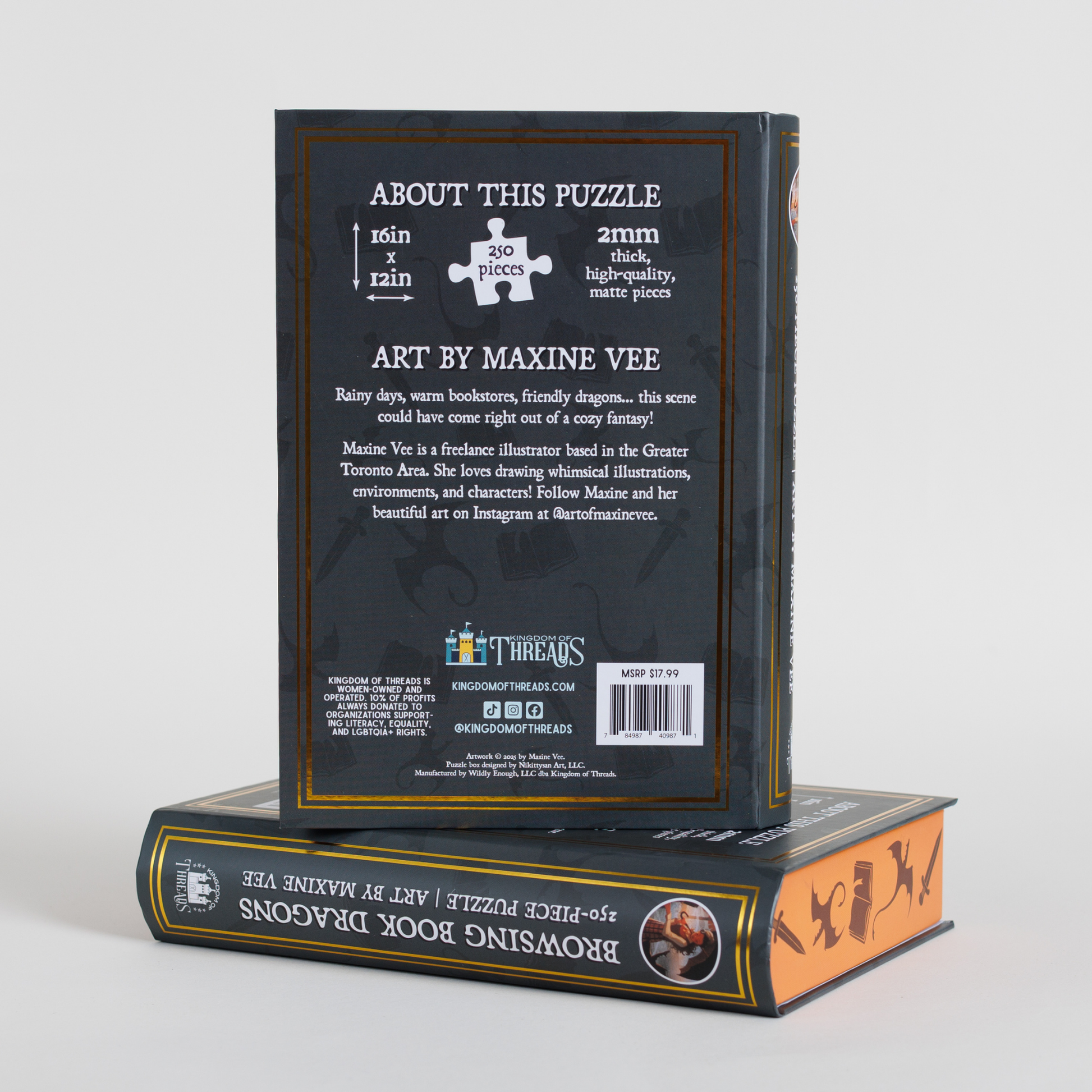 This gorgeous puzzle is perfect for all your customers who dream of a cozy life with adorable little dragons by their side. This incredible puzzle comes in a book-shaped keepsake box complete with sprayed edges, beautiful interior art, and a magnetic closure. This is the perfect gift for the reader who has everything.