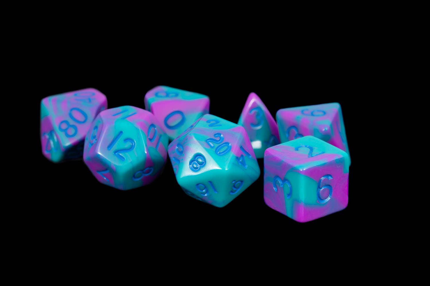 It’s hard to beat the value in our acrylic dice sets. Beautiful and affordable, these are great “critical reinforcers” to our metal dice. Each 16mm polyhedral set comes with 7 dice (d4, d6, d8, d10, d10 (00-90), d12, and d20).
