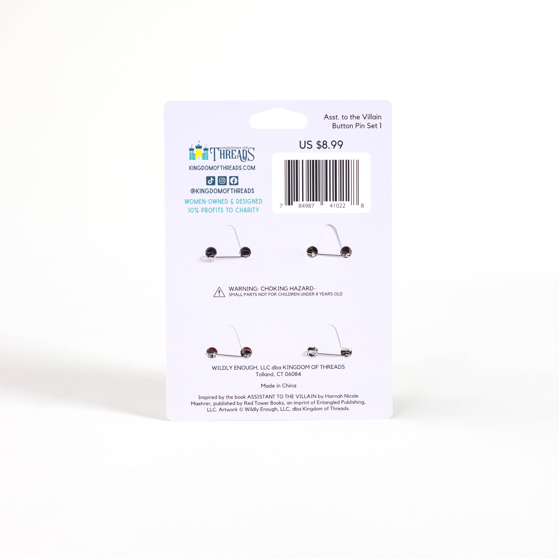 This set of button pins is a must-have for your Assistant to the Villain displays! Your customers will love putting these on their lanyards, bags, and jean jackets.