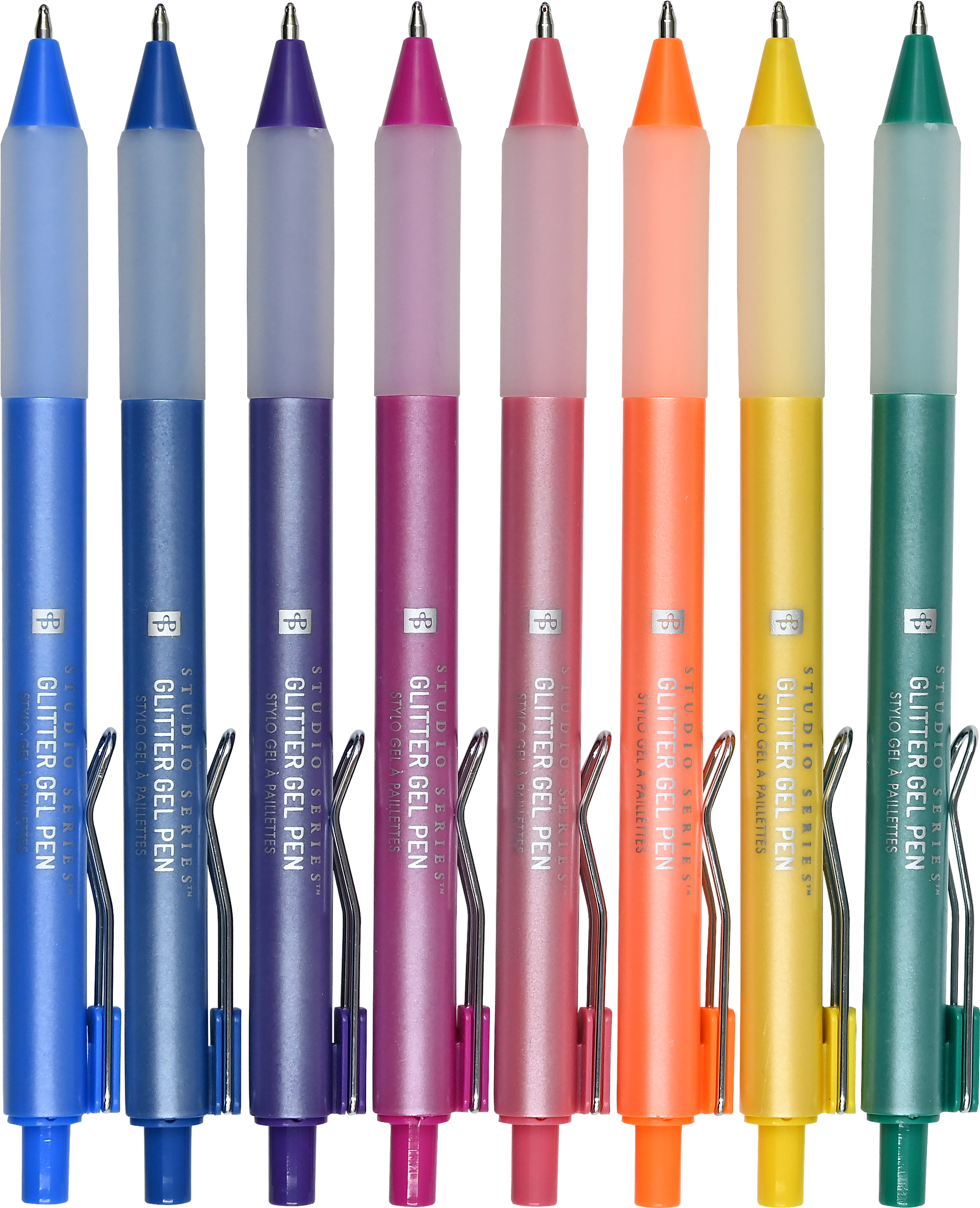 Quick-drying fine-tip gel pens with brilliant glitter colors provide a seamless flow of ink for a flawless writing experience! Retractable gel pens are perfect for journaling, drawing, crafting, and more! Smudge-free. No bleed-through. Choose from a palette of 8 glitter colors to bring pizzazz to all your creative projects! Purple, dark blue, light blue, yellow, orange, pink, red, and green. Sparkly, vibrant colors that shimmer! Precise 1.0 mm nibs. User-friendly retractable design. Effortless writing with quick-drying ink. Ergonomic rubber grip for comfort. Durable clip provides secure attachment. Reusable case safeguards pens when not in use. Case measures 6'' wide x 7-3/4'' high. For home, school, and office!